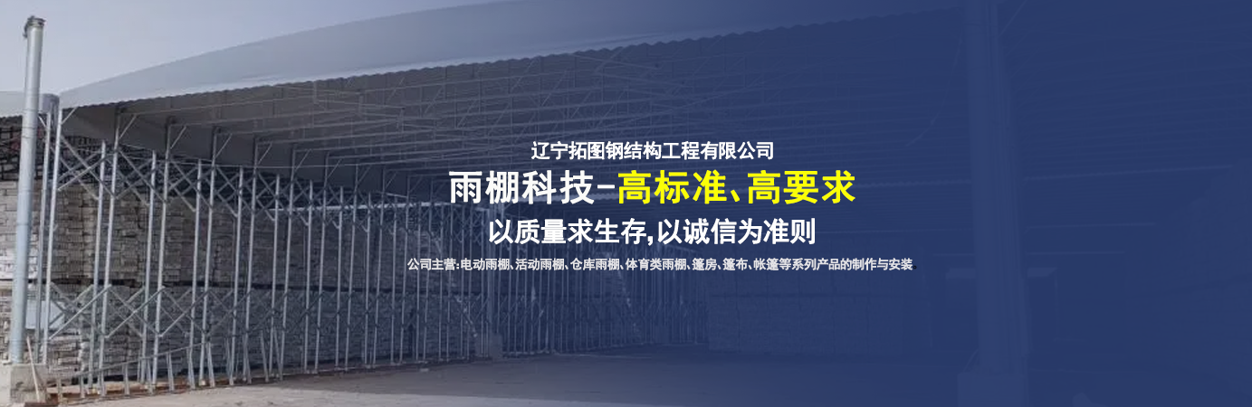 遼寧拓圖鋼結(jié)構(gòu)工程有限公司是一家專業(yè)從事推拉篷設(shè)計、制作、安裝、使用、維修的綜合性公司。公司主營:電動雨棚、活動雨棚、倉庫雨棚、體育類雨棚、篷房、篷布、帳篷等系列產(chǎn)品的制作與安裝。 遼寧拓圖鋼結(jié)構(gòu)工程有限公司堅持以市場為導(dǎo)向,以科技創(chuàng)新為動力,以質(zhì)量求生存,以誠信為準(zhǔn)則,倡導(dǎo)求實、進取、創(chuàng)新的企業(yè)精神。“科學(xué)的管理、嚴(yán)謹(jǐn)?shù)脑O(shè)計、 的制作安裝、嚴(yán)格的質(zhì)量檢測、良好的后期服務(wù)成就企業(yè)的信譽,為您提供優(yōu)質(zhì)服務(wù)。 遼寧拓圖鋼結(jié)構(gòu)工程有限公司傾力于開發(fā)應(yīng)用三維空間結(jié)構(gòu)與新材料的結(jié)合,將廣告藝術(shù)視覺表現(xiàn)形式與張力膜材科學(xué)的結(jié)合,推出多彩推拉蓬,依靠先進的科學(xué)技術(shù),將推拉蓬建筑表現(xiàn)形式無限延伸,立志走在建筑科學(xué)的前沿,引導(dǎo)建筑時尚潮流,我們的目標(biāo)是使推拉蓬建筑在中國發(fā)展壯大。 遼寧拓圖鋼結(jié)構(gòu)工程有限公司憑著極強的事業(yè)熱情和豐富的專業(yè)經(jīng)驗以“勤勉進取、銳意創(chuàng)新、至誠至信”的精神使公司得到迅速健康發(fā)展,業(yè)務(wù)范圍遍及全國。科學(xué)的管理、嚴(yán)謹(jǐn)?shù)脑O(shè)計、高標(biāo)準(zhǔn)的制作安裝流程,嚴(yán)格把控產(chǎn)品質(zhì)量,熱誠的售后服務(wù)是企業(yè)競爭力的源泉。 遼寧拓圖鋼結(jié)構(gòu)工程有限公司人愿以最誠摯的態(tài)度,歡迎廣大客戶的蒞臨與溝通!愿為市場提供優(yōu)...